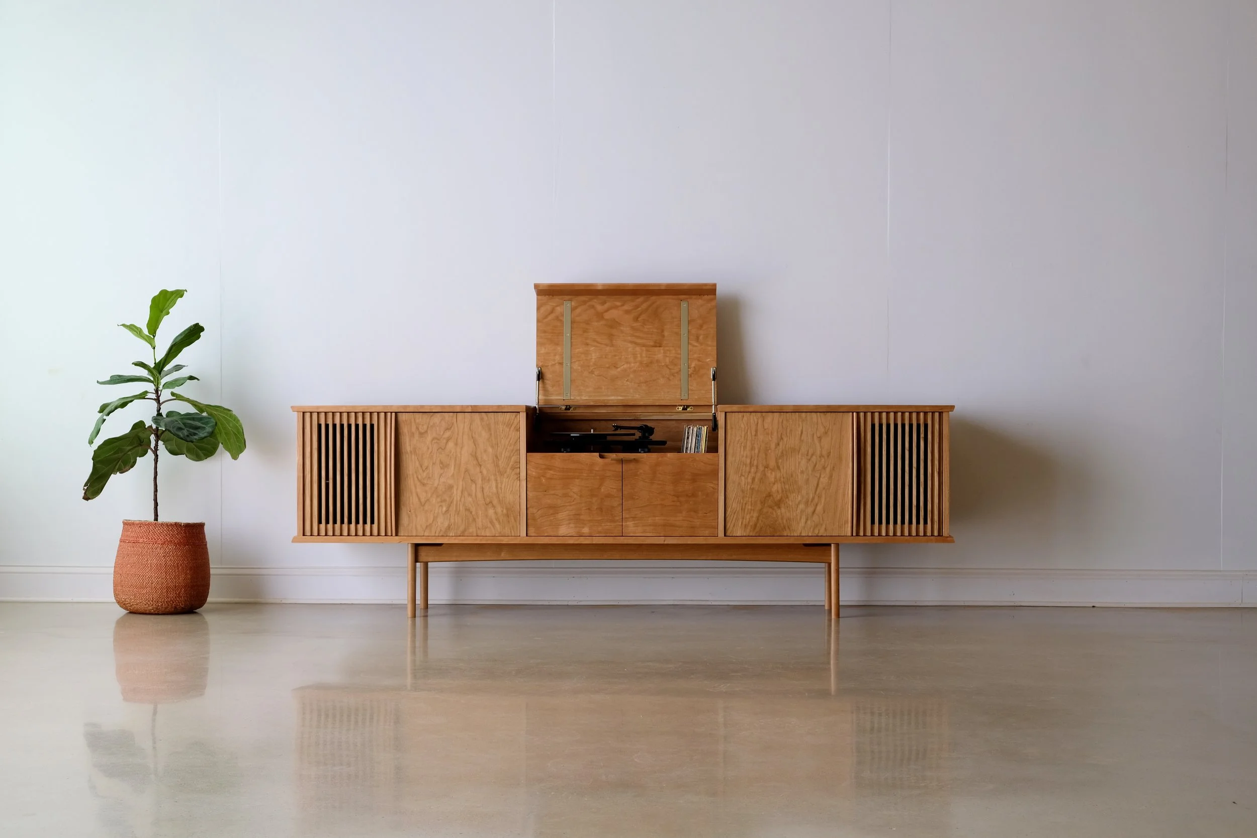 We make modern record consoles and sideboards that showcase the beauty of solid wood.